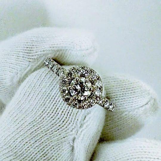 ZAJ21 Anillo De Compromiso Medio Cintillo Clásico 7 Diamantes Engastados en Copa Oro Blanco