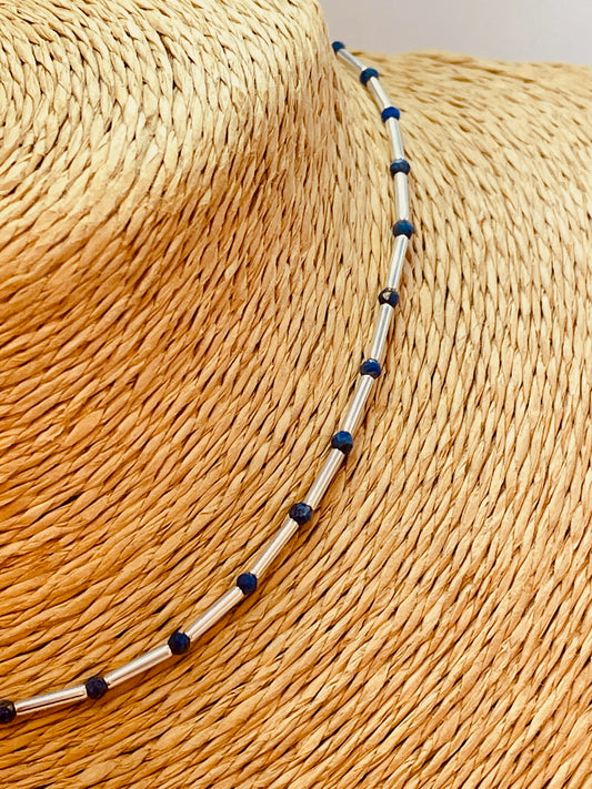 ZP4021 Collar Tubitos Lapislázuli Baño Plata
