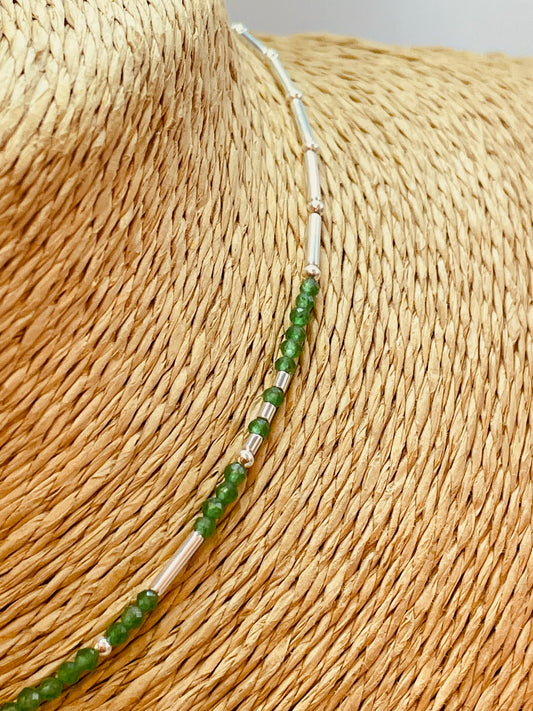ZP4023 Collar Tubitos Peridoto Baño Plata