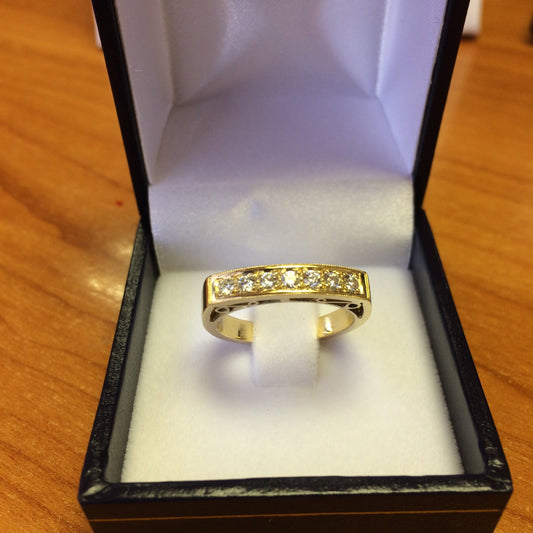 ZAJ9 Anillo Cintillo 7 Diamantes Engastado en Grifas Puente Calado y Ruleteado Oro 18 Kt