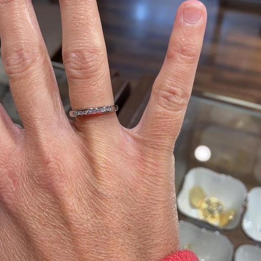 ZAJ19 Anillo De Compromiso Medio Cintillo Clásico 9 Diamantes Engaste en Riel Platino
