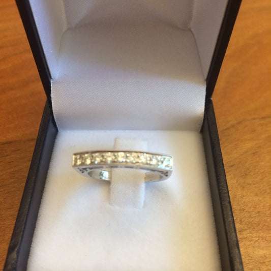 ZAJ8 Anillo de Compromiso Cintillo 9 Diamantes Engaste en Grifas Puente Calado Oro Blanco