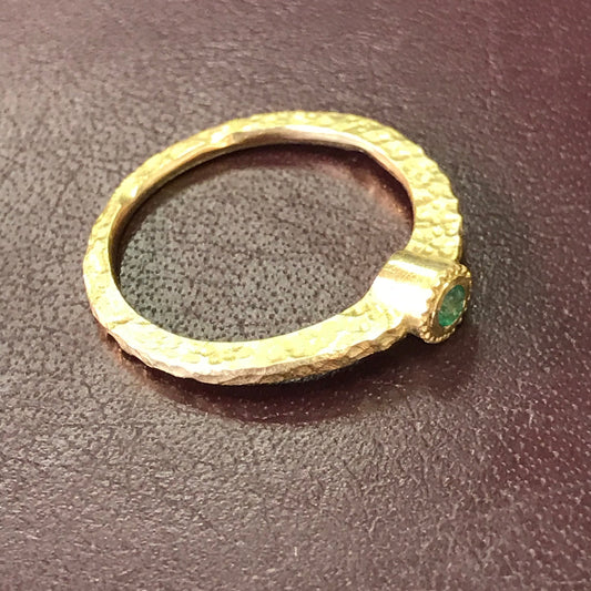 ZAJ12 Anillo Martillado Esmeralda Ruleteado Engaste Invisible Oro 18 Kt