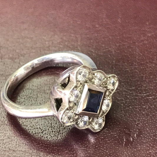 ZAJ17 Anillo Rombo Zafiro Azul y Circones Suizos Plata
