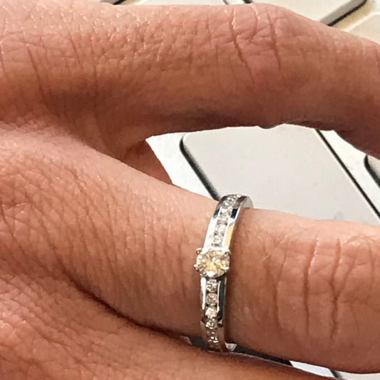 ZAJ21 Anillo De Compromiso Medio Cintillo Clásico 7 Diamantes Engastados en Copa Oro Blanco