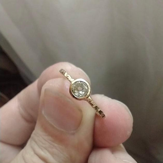 ZAJ20 Anillo Martillado Diamante en Cabezal Oro 18 Kt
