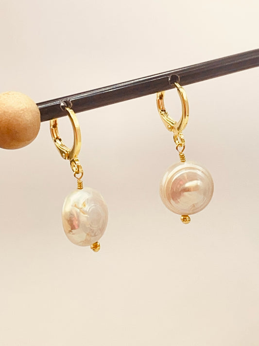 ZO2512 Aro Argolla Perla de Río Plana Embarrilada Baño Oro