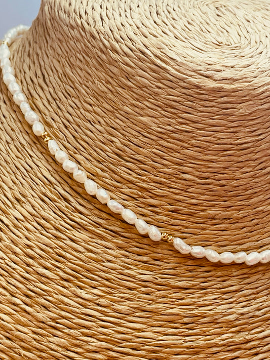 ZO4029 Collar Perlas de Río 2.8 mm Bolitas Baño Oro