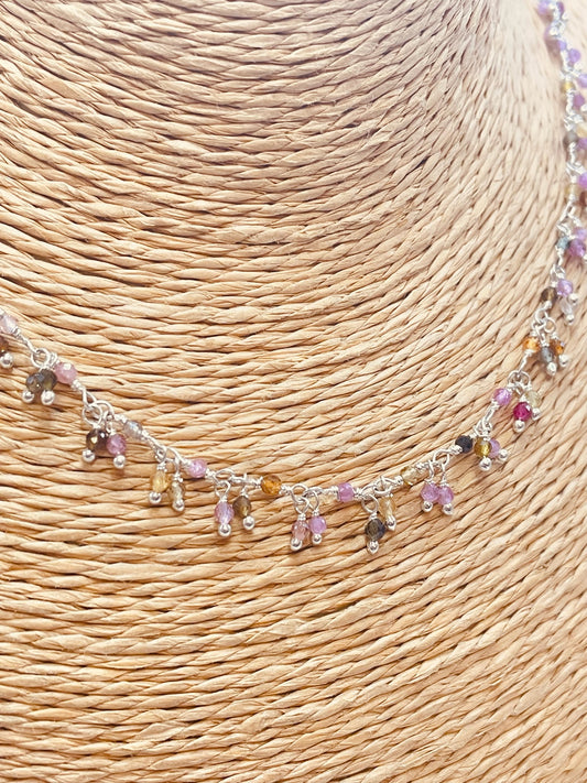 ZP4050 Collar Entorchado Racimo Mix de Piedras 40 cm mas Extensor Baño Plata