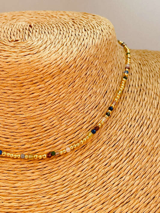 ZO4064 Collar Mix de Piedras 2 mm Bolitas 2 mm y 2.5 mm Largo 40 cm y extensor de 5 cm Collar Baño Oro
