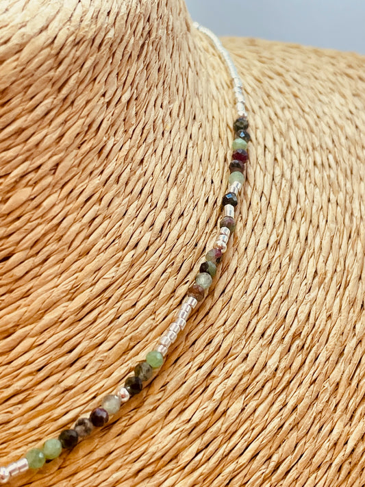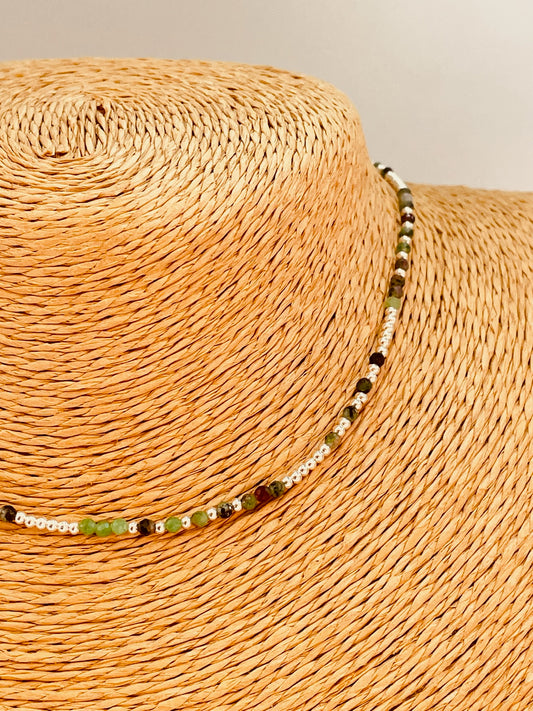 ZP4030 Collar Mostacillas Rubí Zoisita Baño Plata