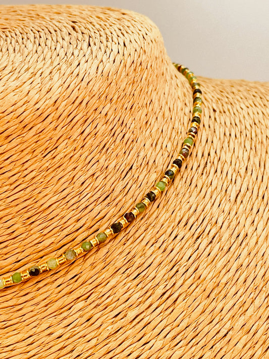 ZO4045 Collar Rubí Zoisita 3 mm y tubito de 2 mm Largo 40 cm y extensor 5 cm Collar Baño Oro