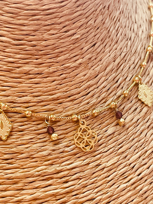 ZO4023 Collar Cadena Bolitas Accesorios Varios y Piedras Baño Oro