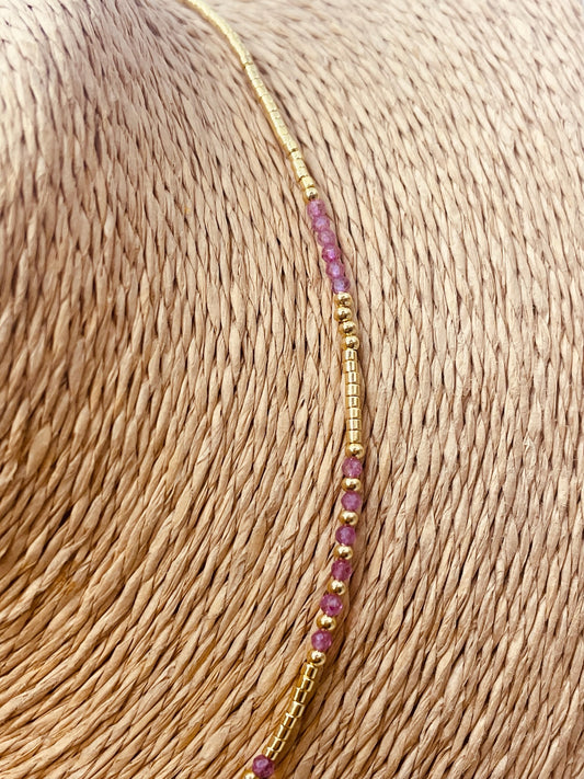 ZP4028 Collar Bolitas y Mostacillas Turmalina Rosa Baño Plata
