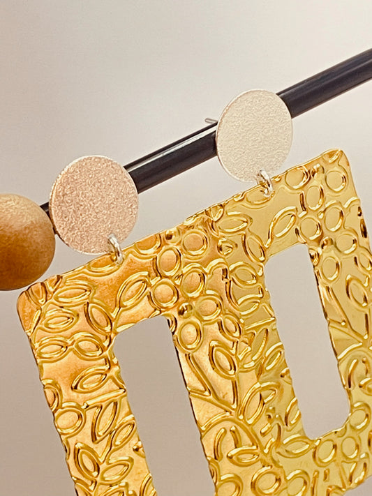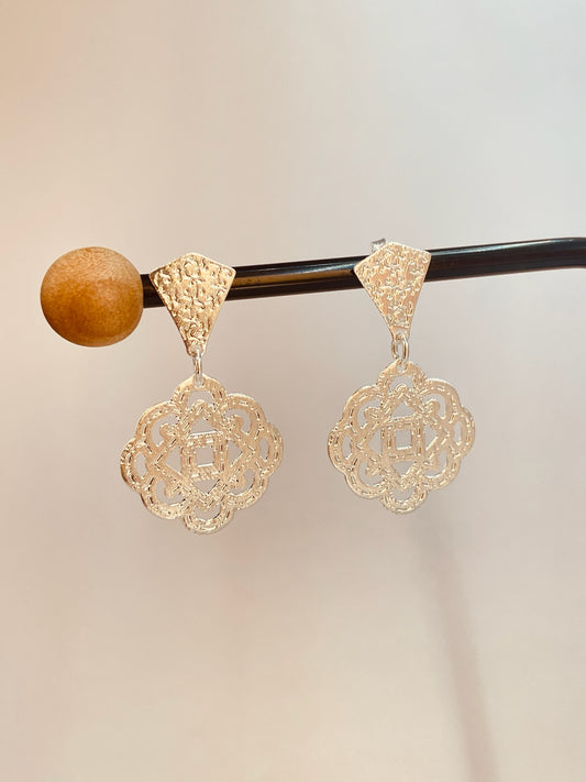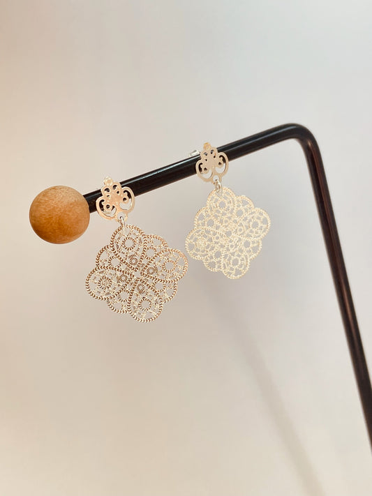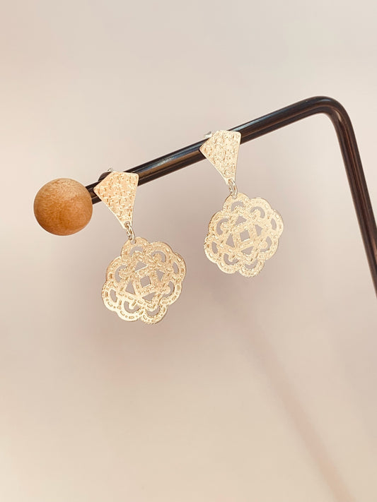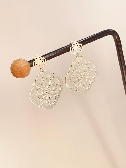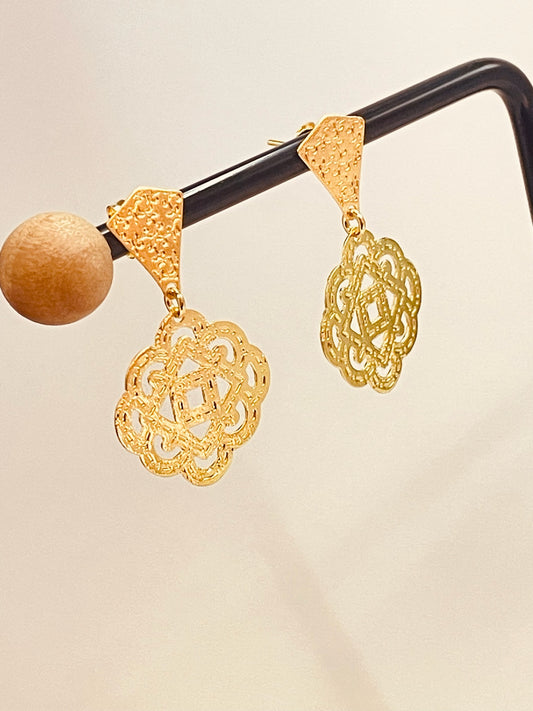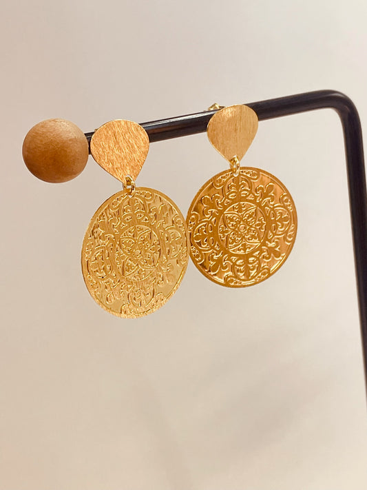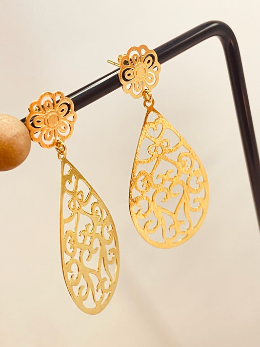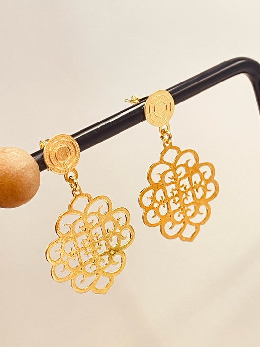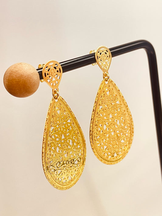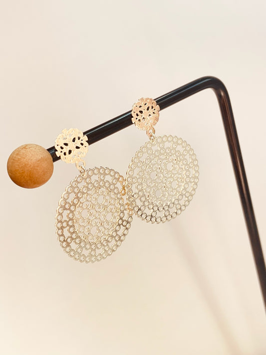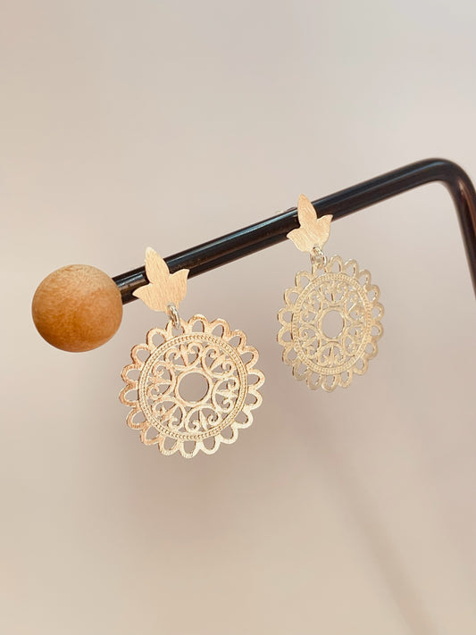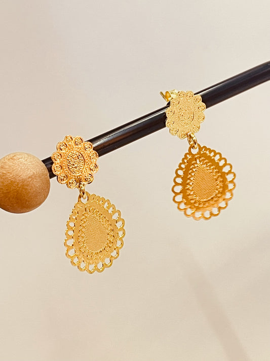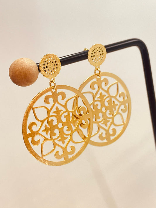 ZO2542 Aro Oval Alargado Mándala Calada Baño Oro
