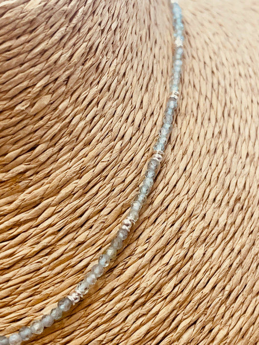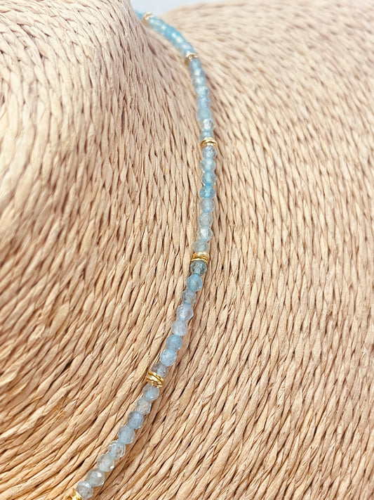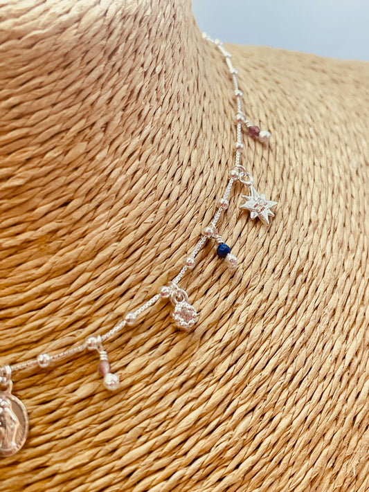 ZP4034 Collar Bolitas Aguamarina Virgen de los rayos Baño Plata