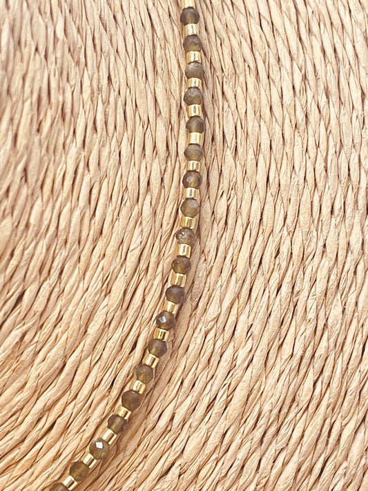 ZO4015 Collar Mostacillas Cuarzo Fume Virgen con Circones Baño Oro