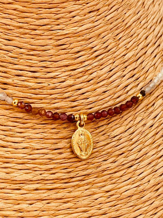 ZO4004 Collar Mostacillas Espinela Virgen de los Rayos Baño Oro