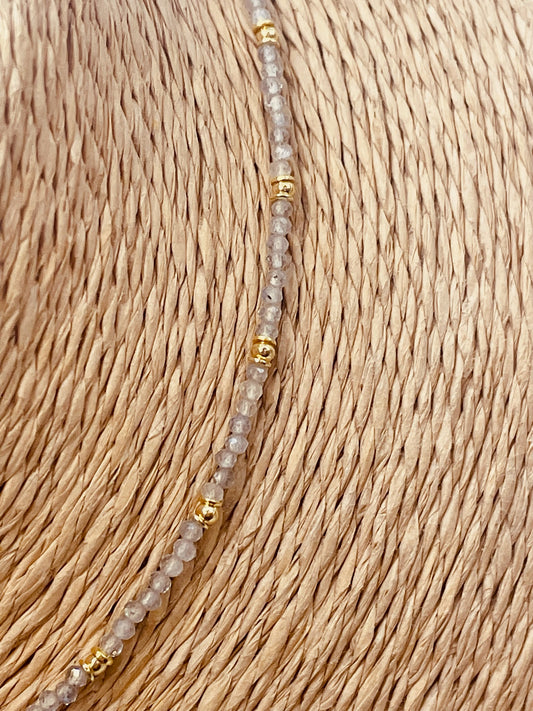 ZO4016 Collar Bolitas Labradorita Cruz con Circones Baño Oro