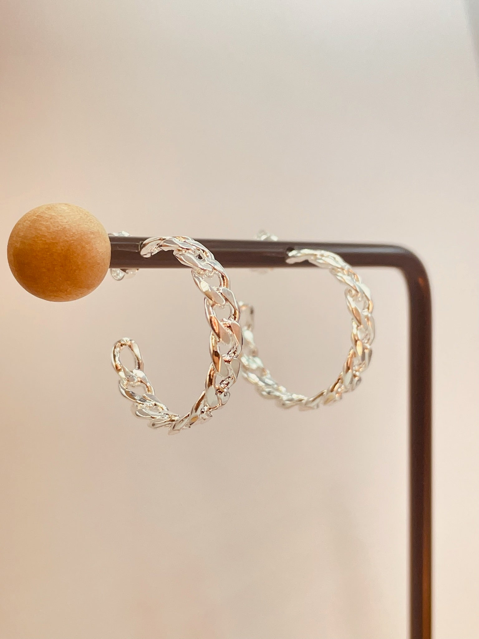 ZP2242 Aro Argolla Cadena 20 x4.5 mm Baño Plata