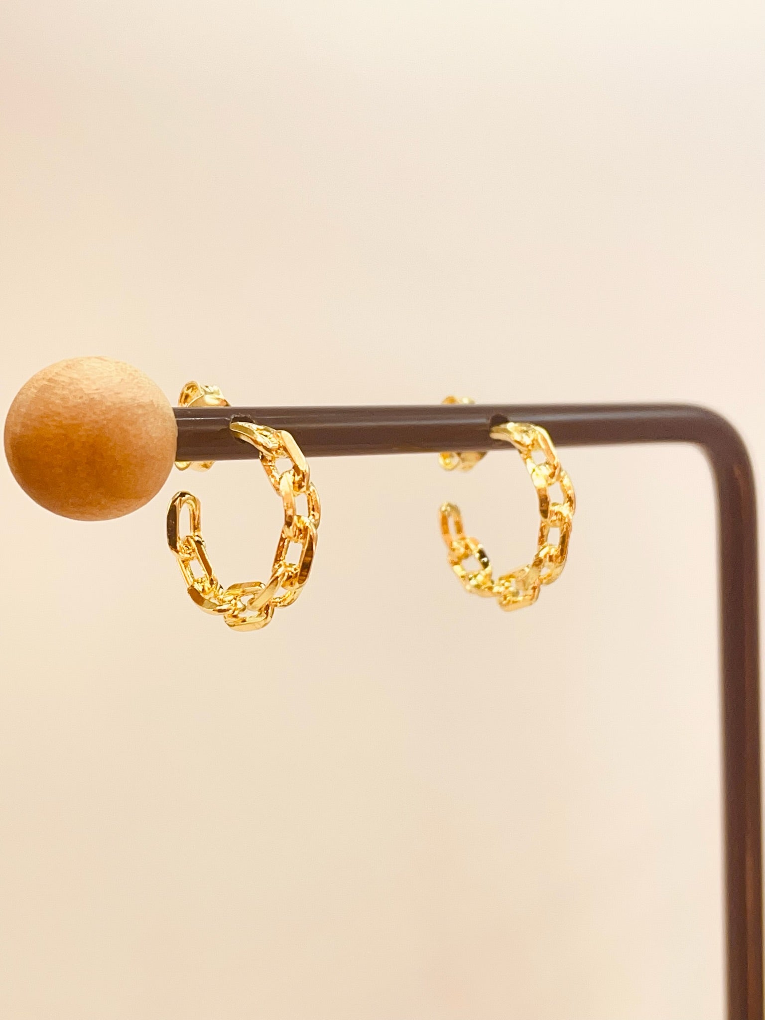 ZO2127 Aro Argolla Cadena Tipo Cartier 15 mm Baño Oro