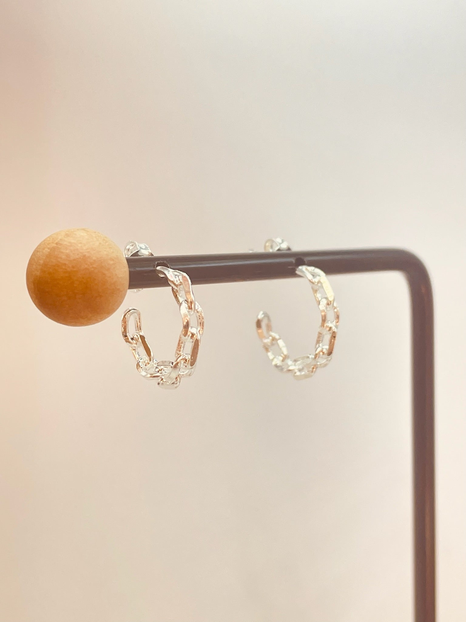 ZP2127 Aro Argolla Cadena Tipo Cartier 15 mm Baño Plata