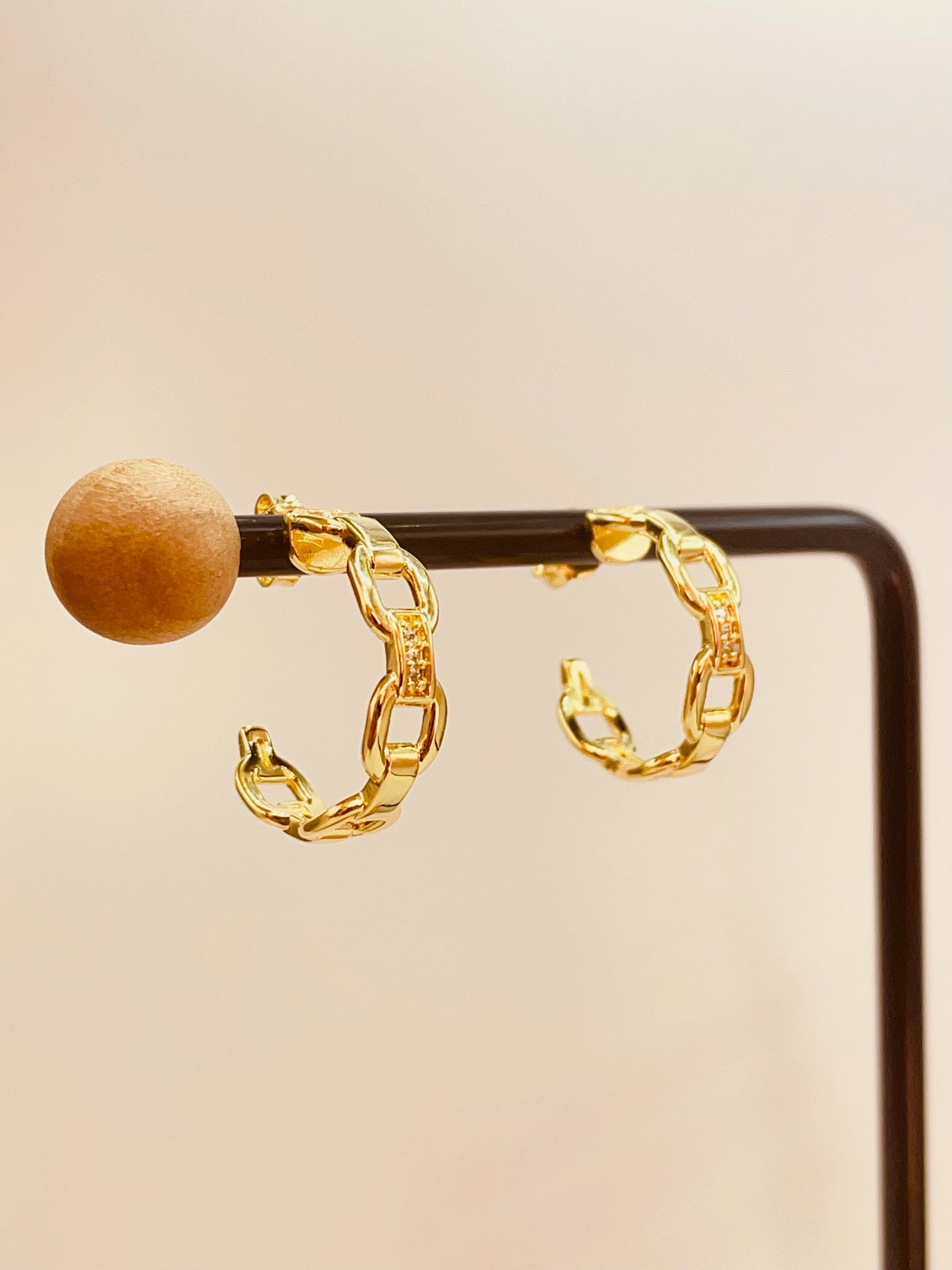 ZO2250 Aro Argolla Eslabones y 1 eslabón con 3 micro circones 20 x 5 mm Baño Oro