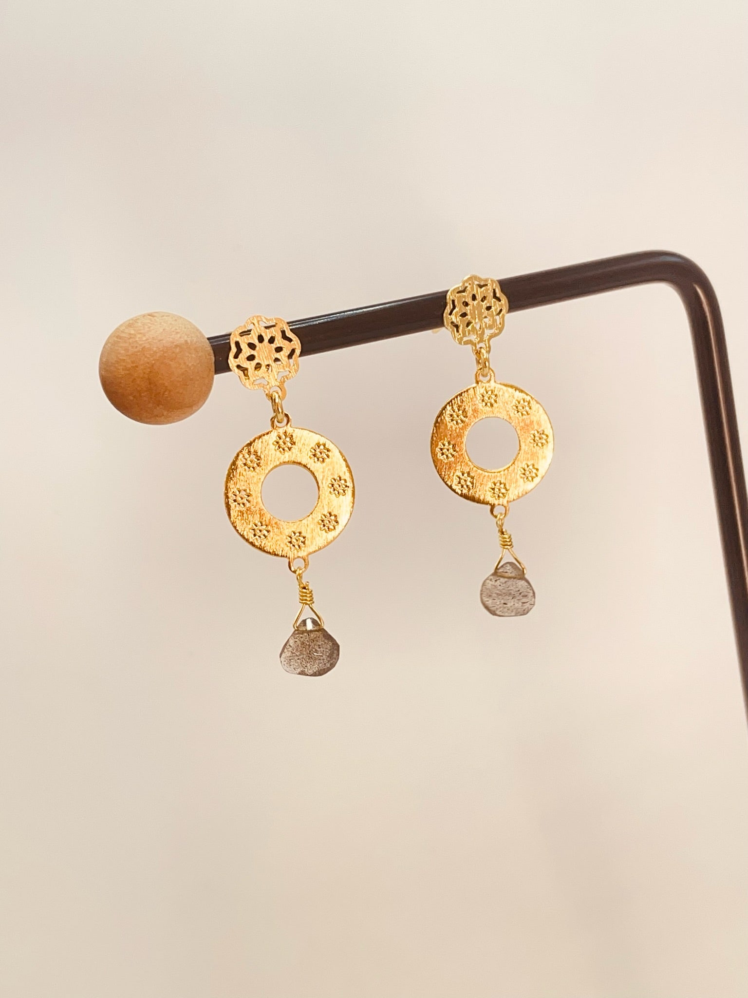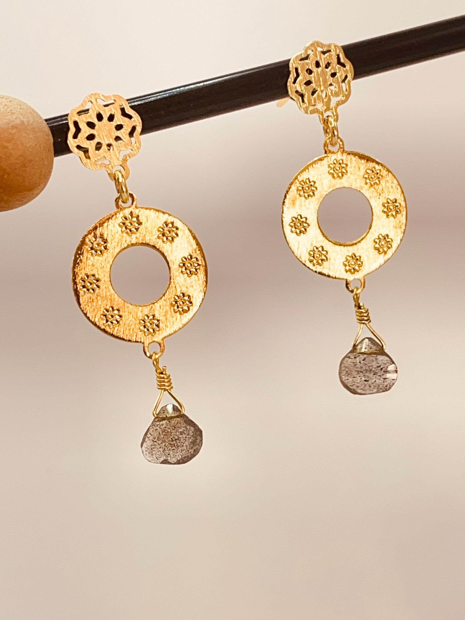ZO2524 Aro Argolla Flor Labradorita Oval Baño Oro