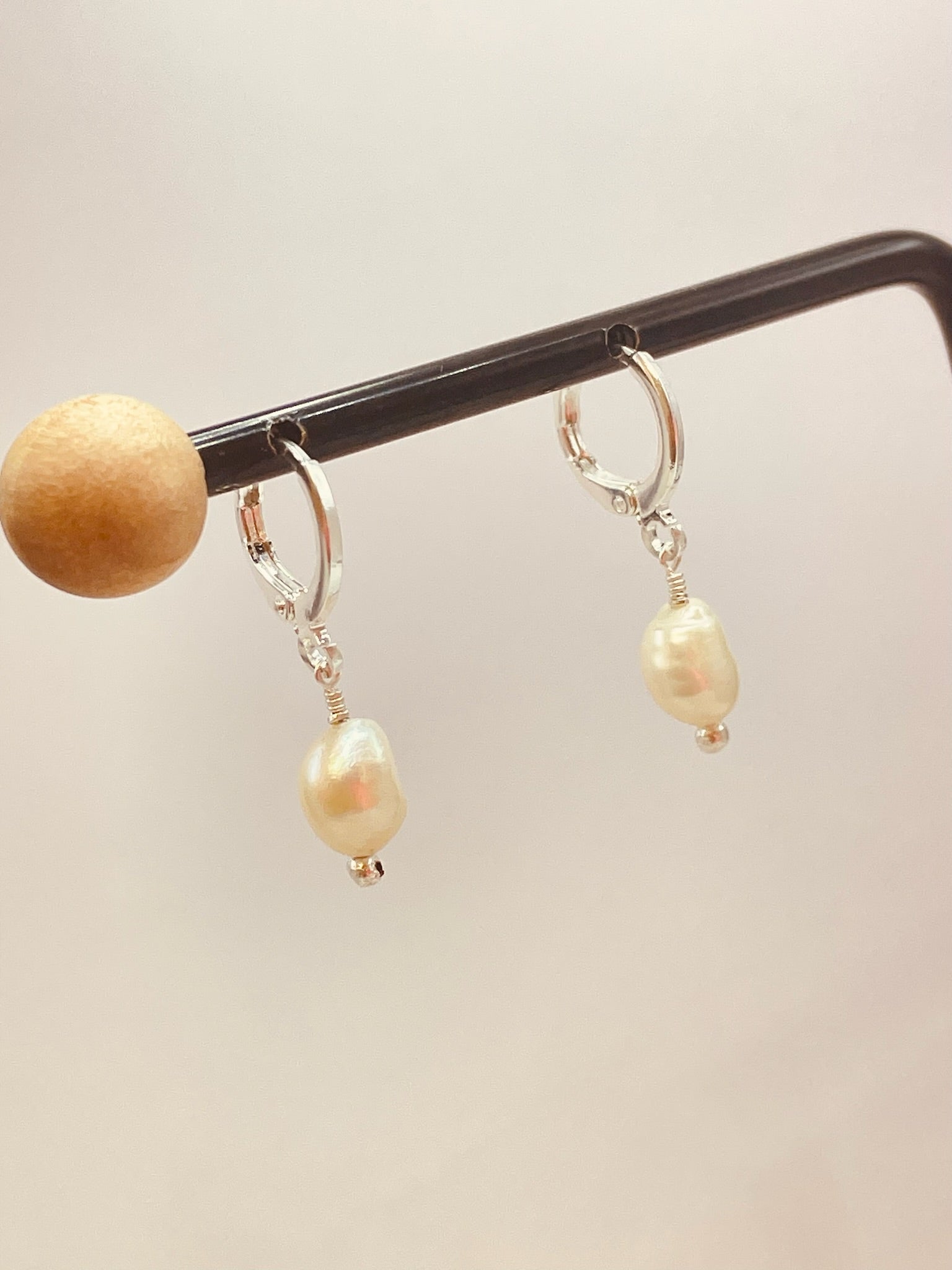 ZP2504 Aro Argolla Perla Ovalada Embarrilada Baño Plata