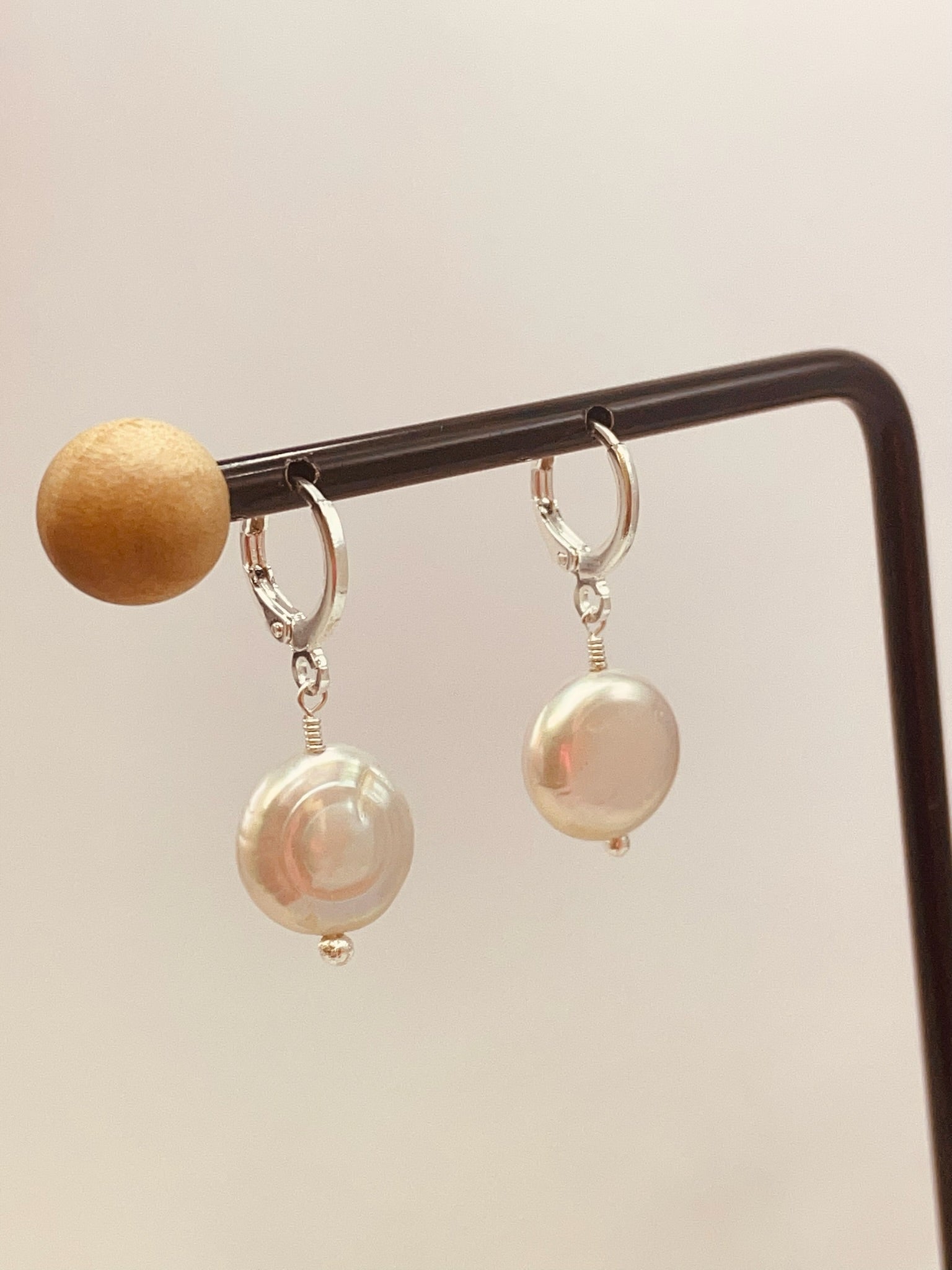 ZP2505 Aro Argolla Perla de Río Plana Embarrilada Baño Plata