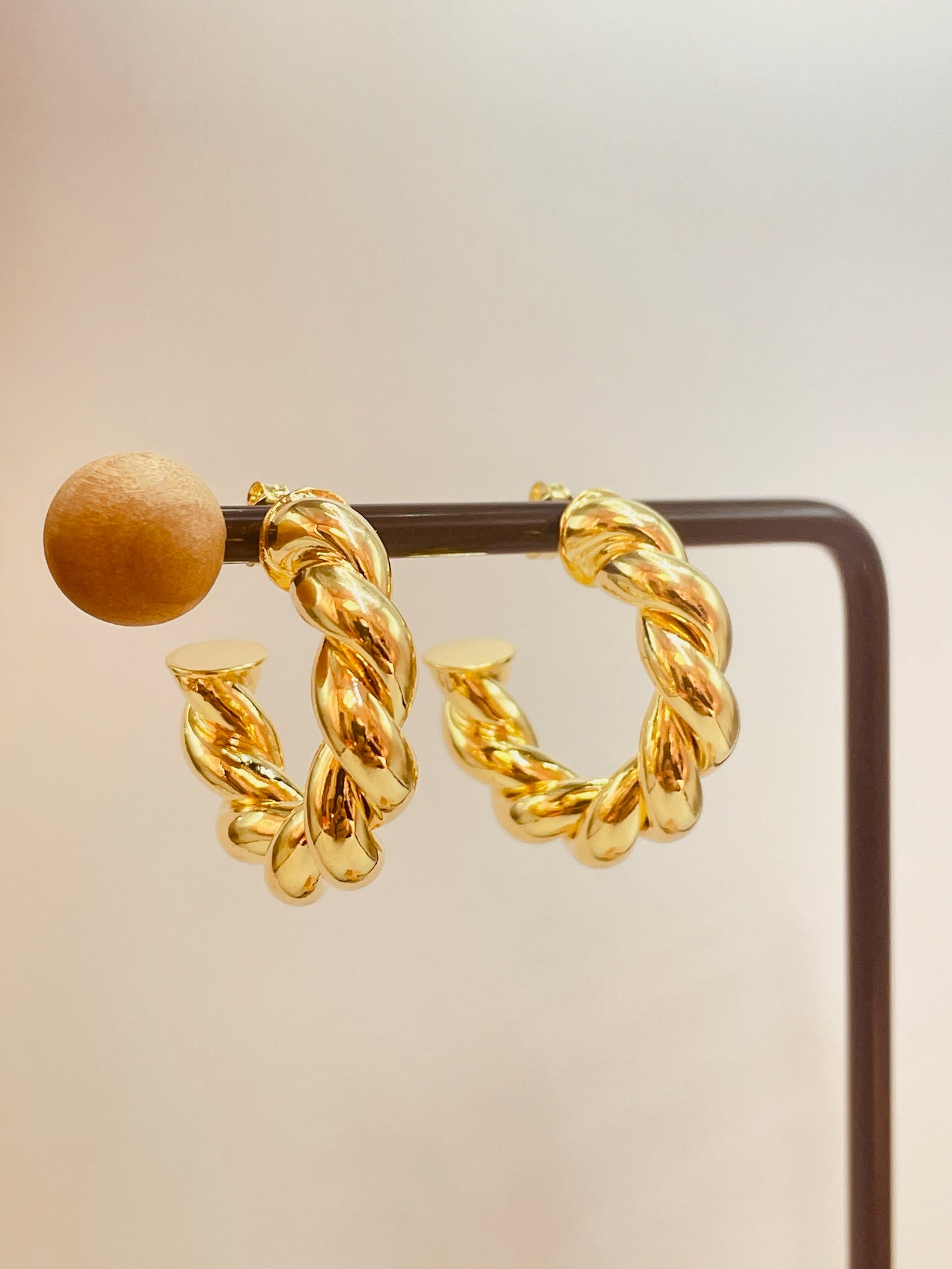 ZO2223 Aro Argolla trenzada 20 mm x 4 mm Baño Oro