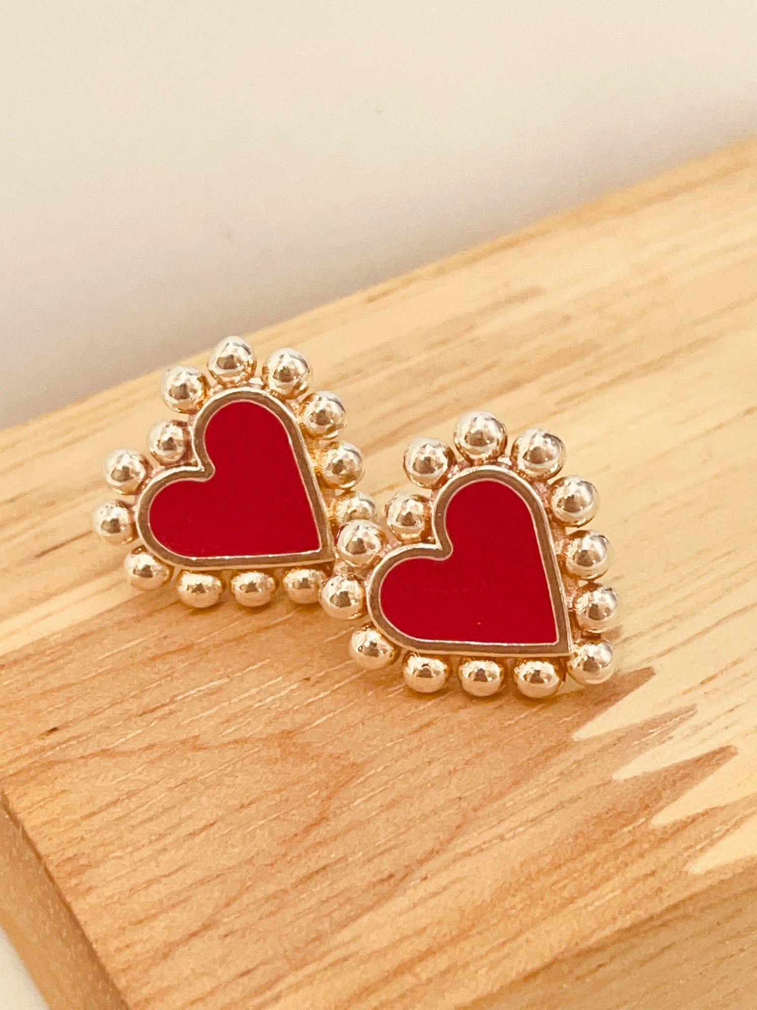 ZP2502 Aro Corazon Bolitas Resina Roja Baño Plata