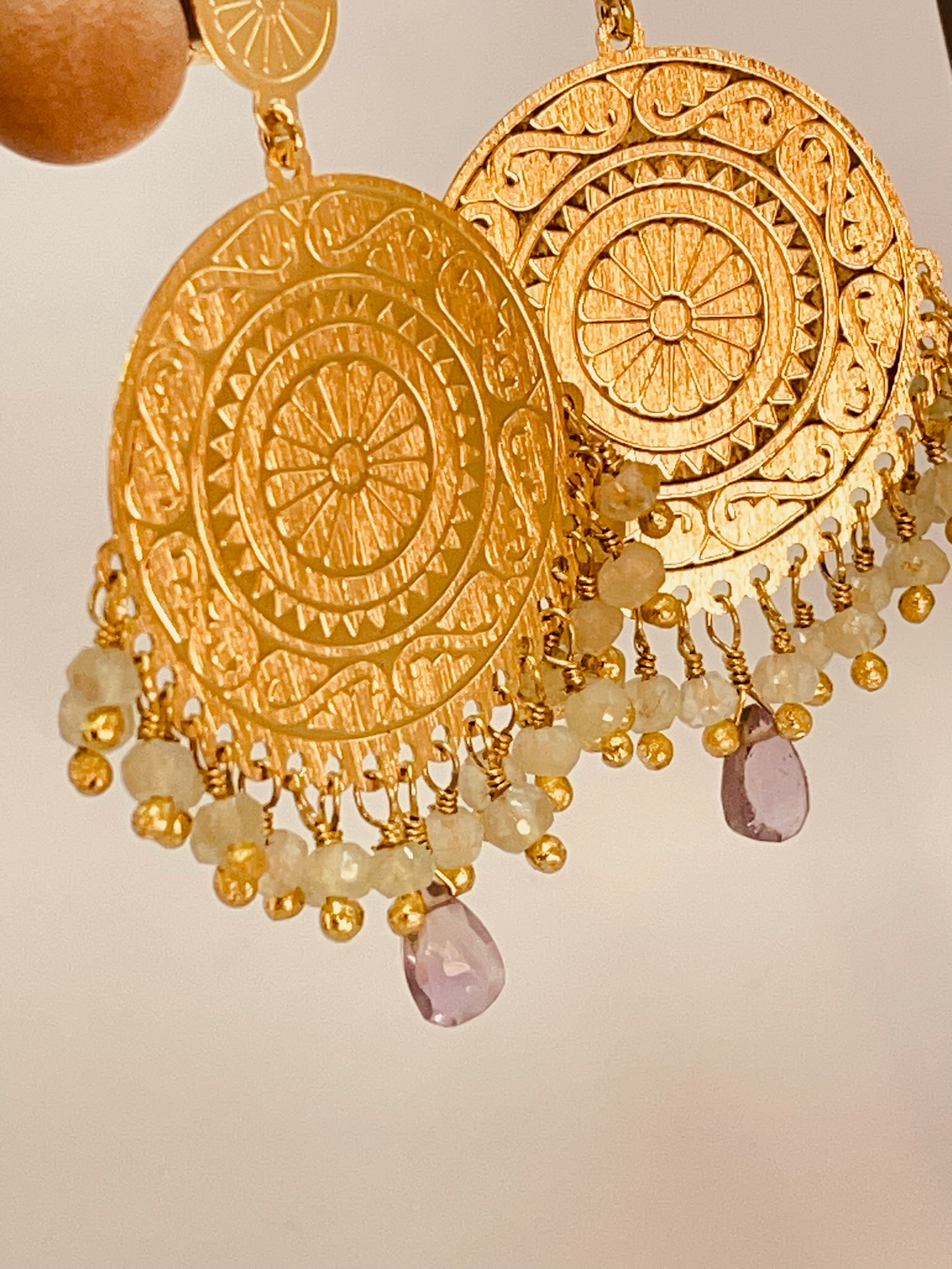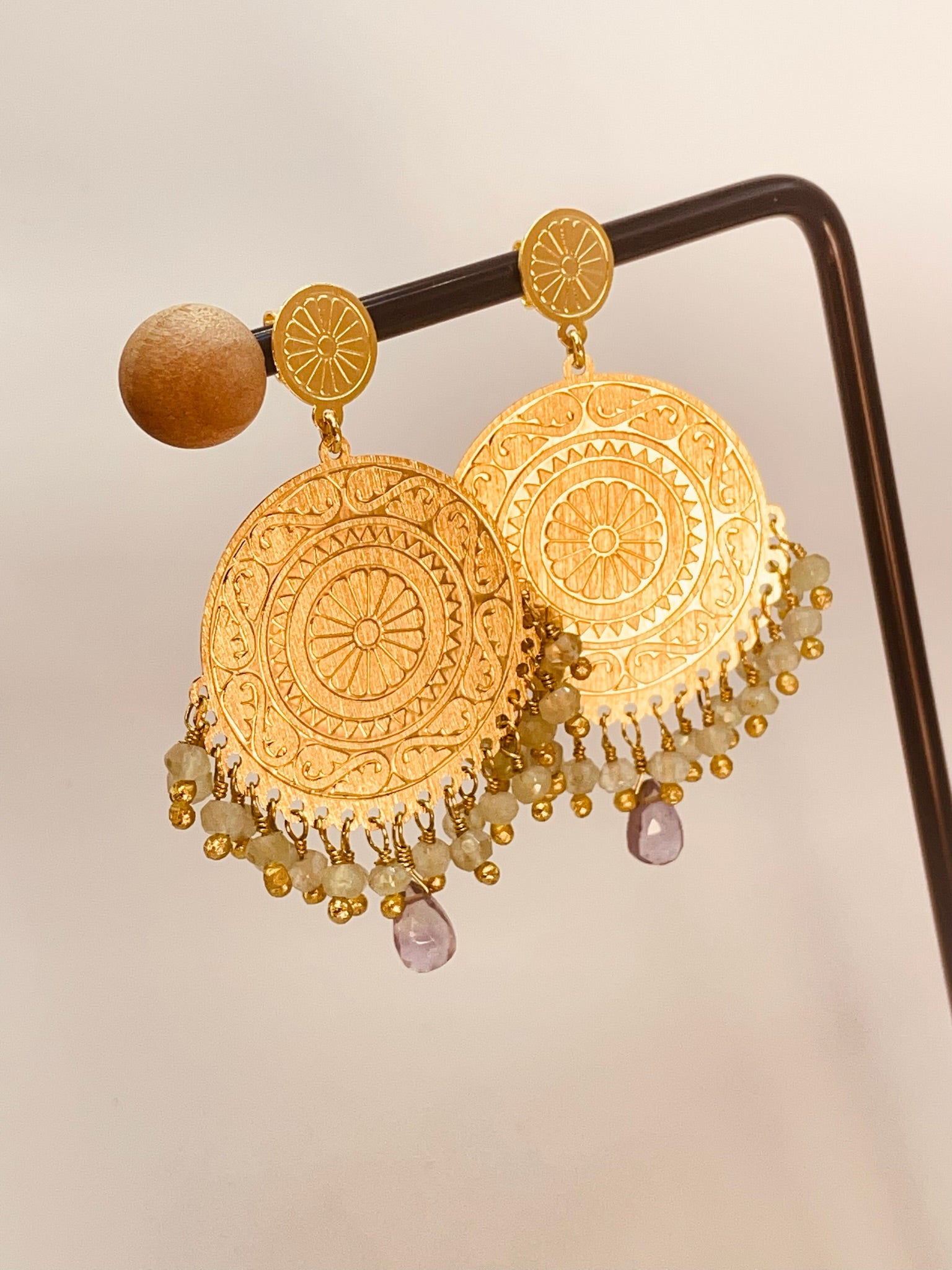 ZO2516 Aro Mándala Amatista Aguamarina Lechosa Baño Oro