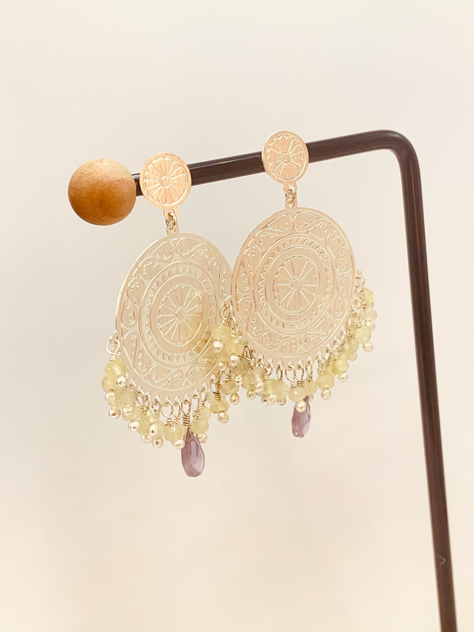 ZP2518 Aro Mándala Citrino - Amatista Gota Baño Plata