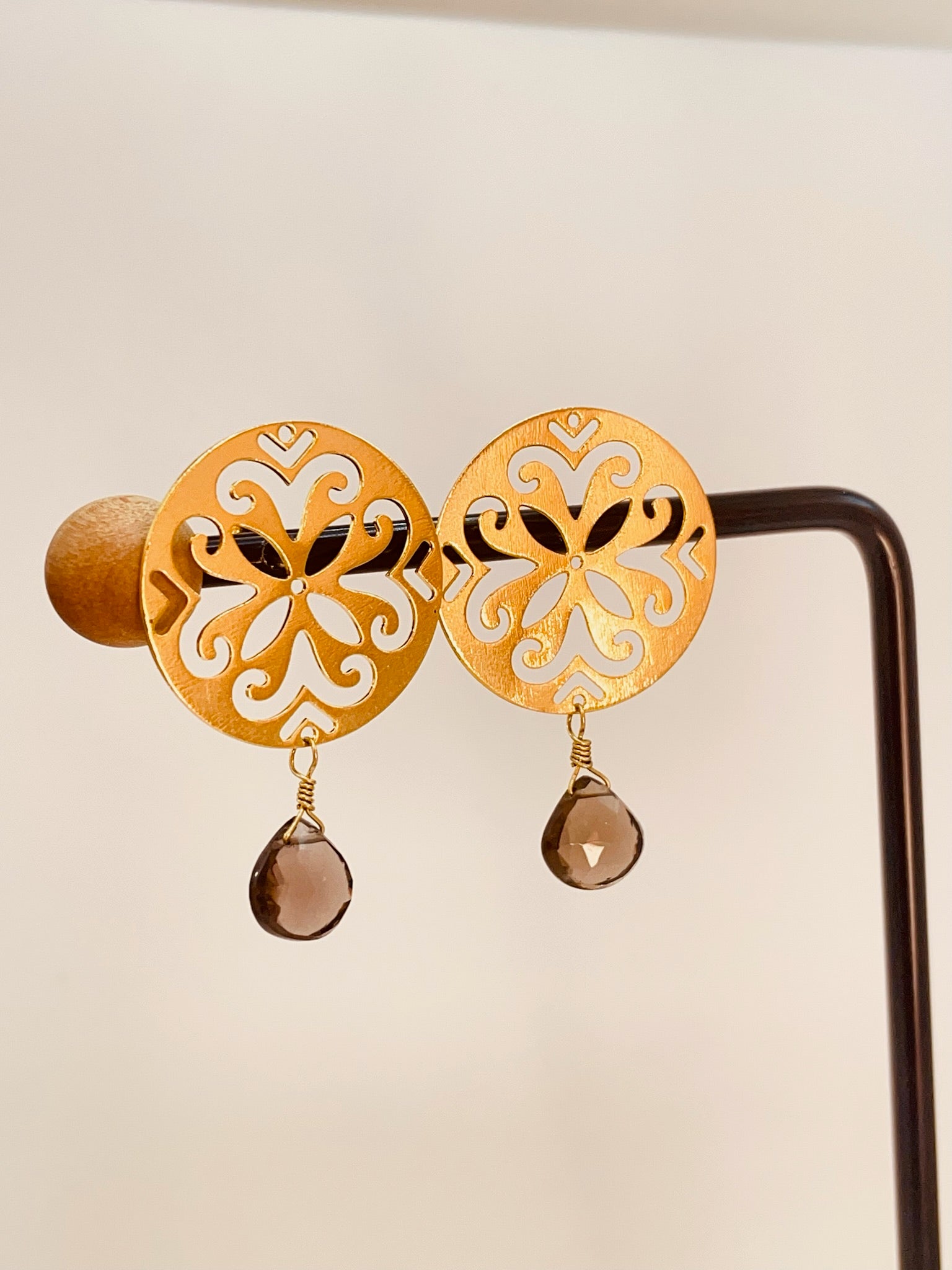 ZO2525 Aro Mándala Cuarzo Fume Oval Baño Oro
