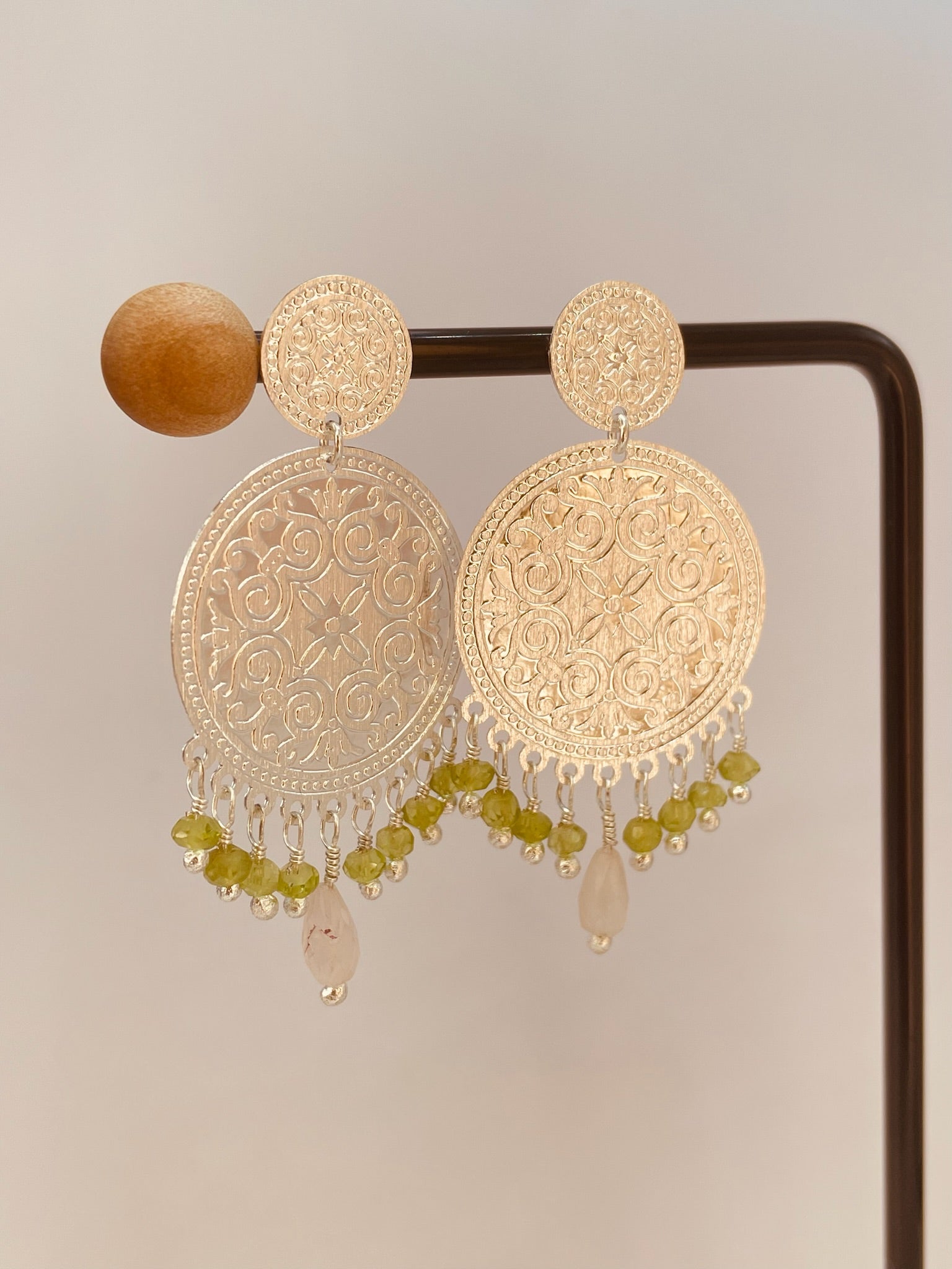 ZP2509 Aro Mándala Peridoto - Cuarzo Rosa Baño Plata