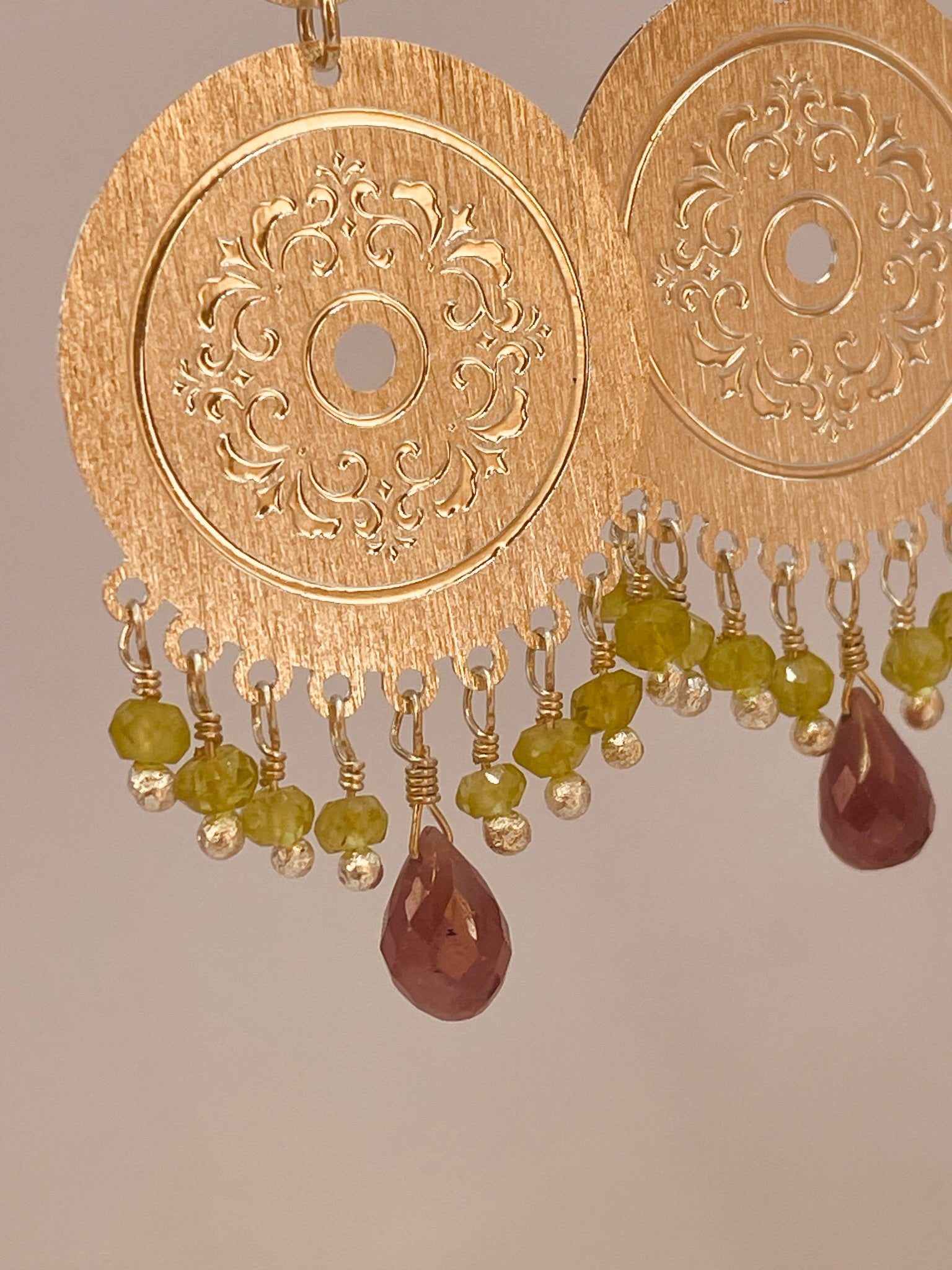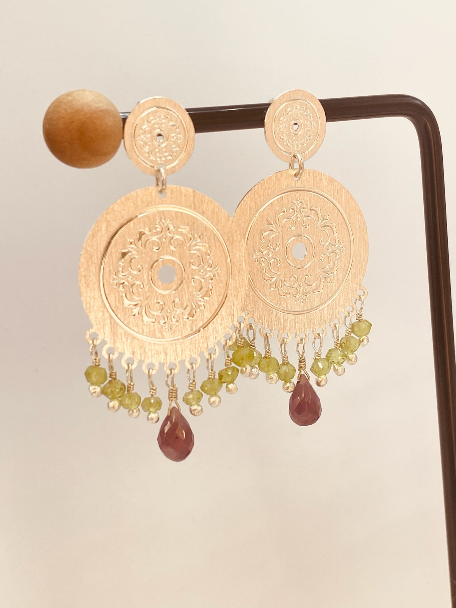 ZP2507 Aro Mándala Peridoto-Turmalina Rosa Baño Plata