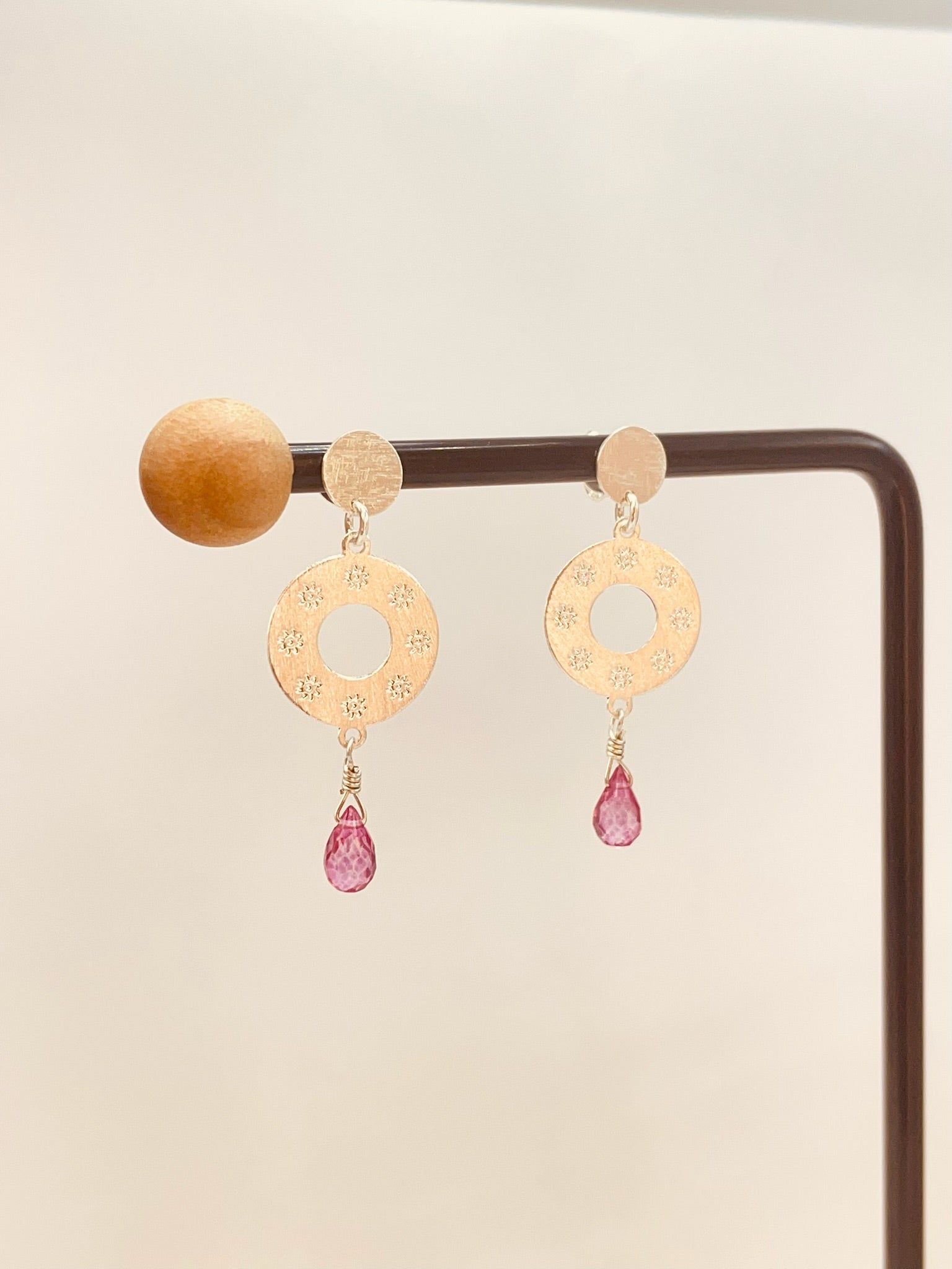 ZP2520 Aro Mándala Topacio Rosa Baño Plata