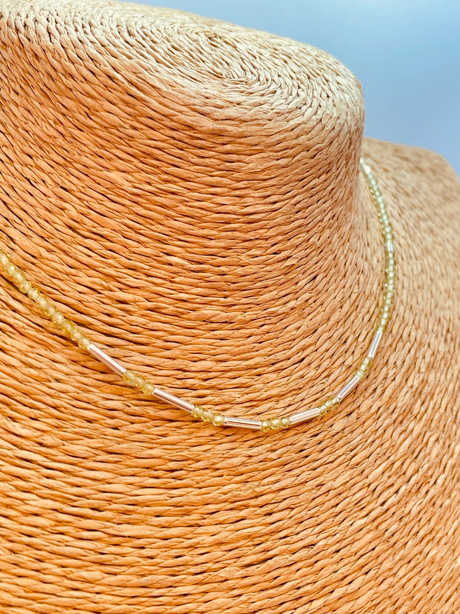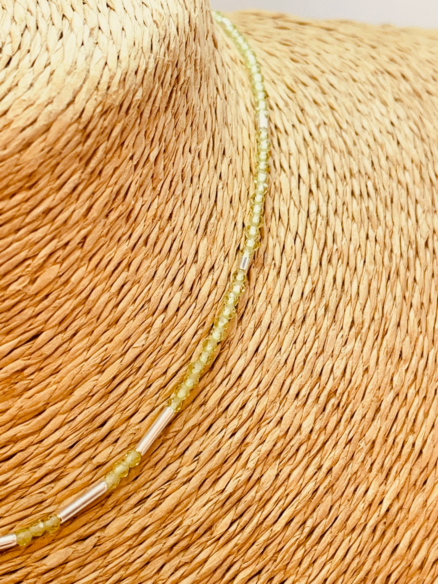 ZP4023 Collar Tubitos Peridoto Baño Plata
