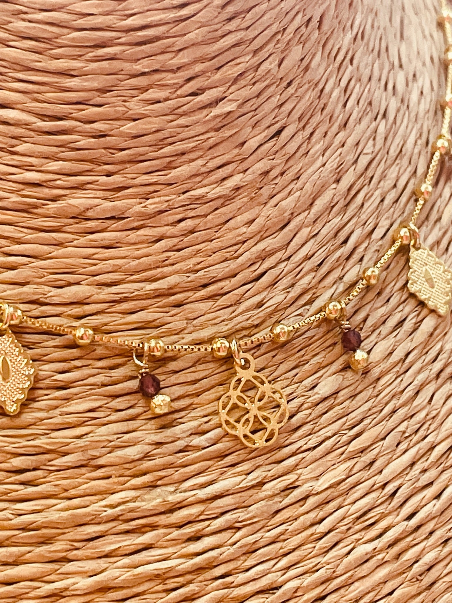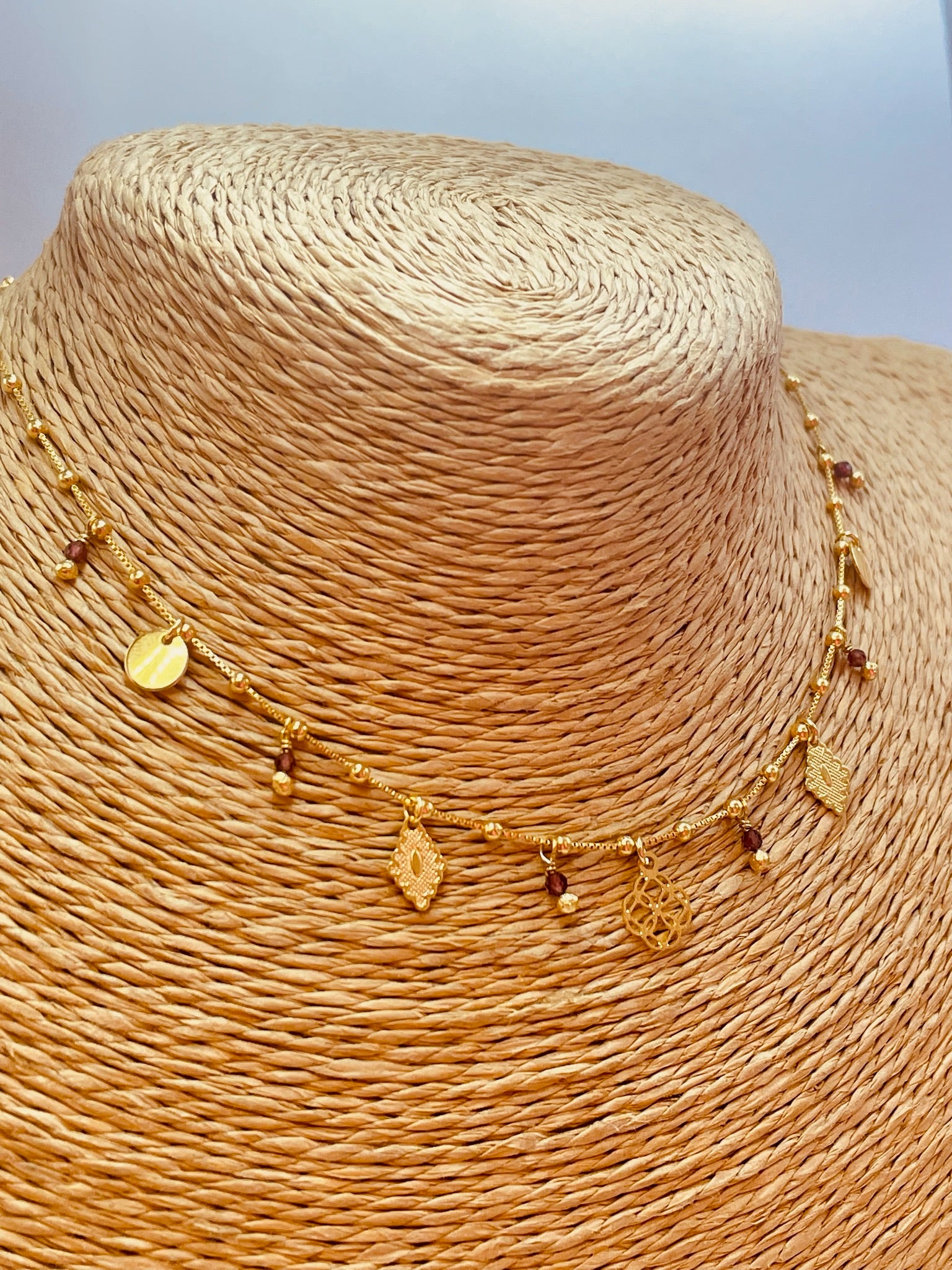 ZO4023 Collar Cadena Bolitas Accesorios Varios y Piedras Baño Oro