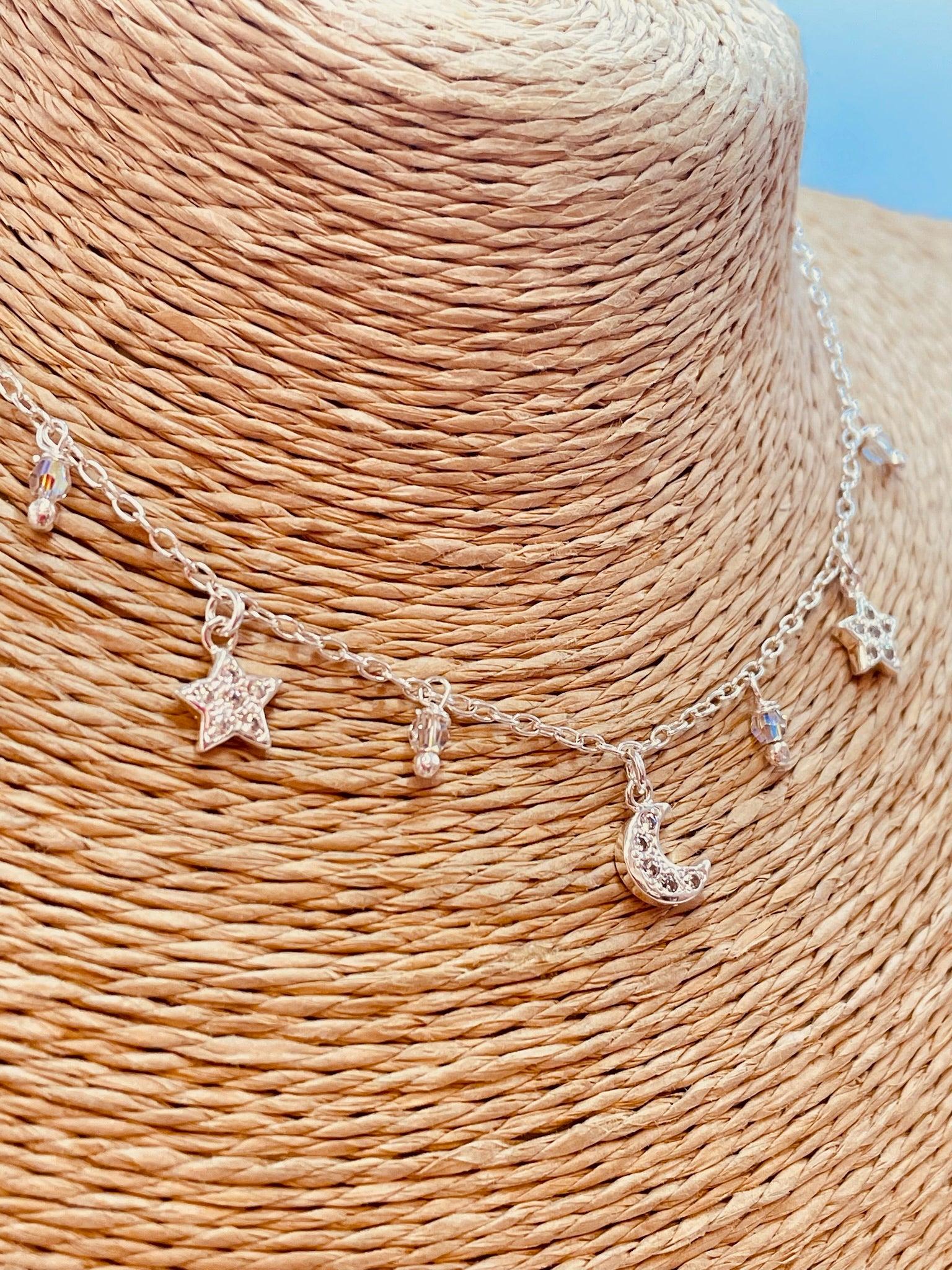 ZP4017 Collar Luna Estrellas Circones 40 cm Baño Plata