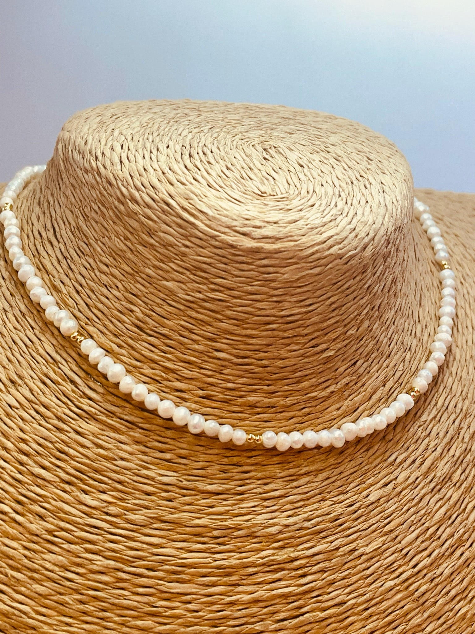 ZO4028 Collar Perlitas de río 3 mm Bolitas Baño Oro