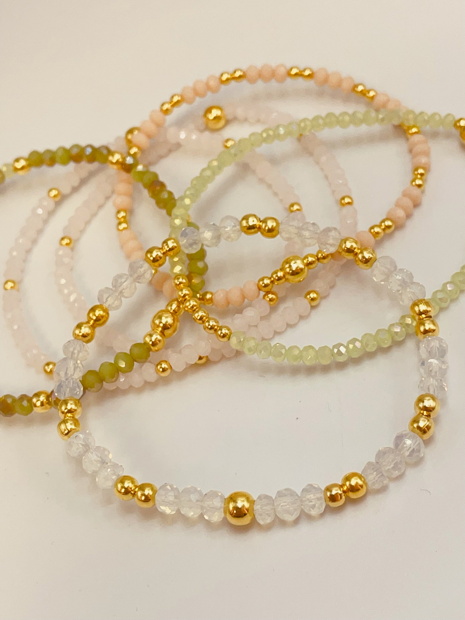 ZO3012 Pulsera Elastizada Bolitas Cristales Baño Oro