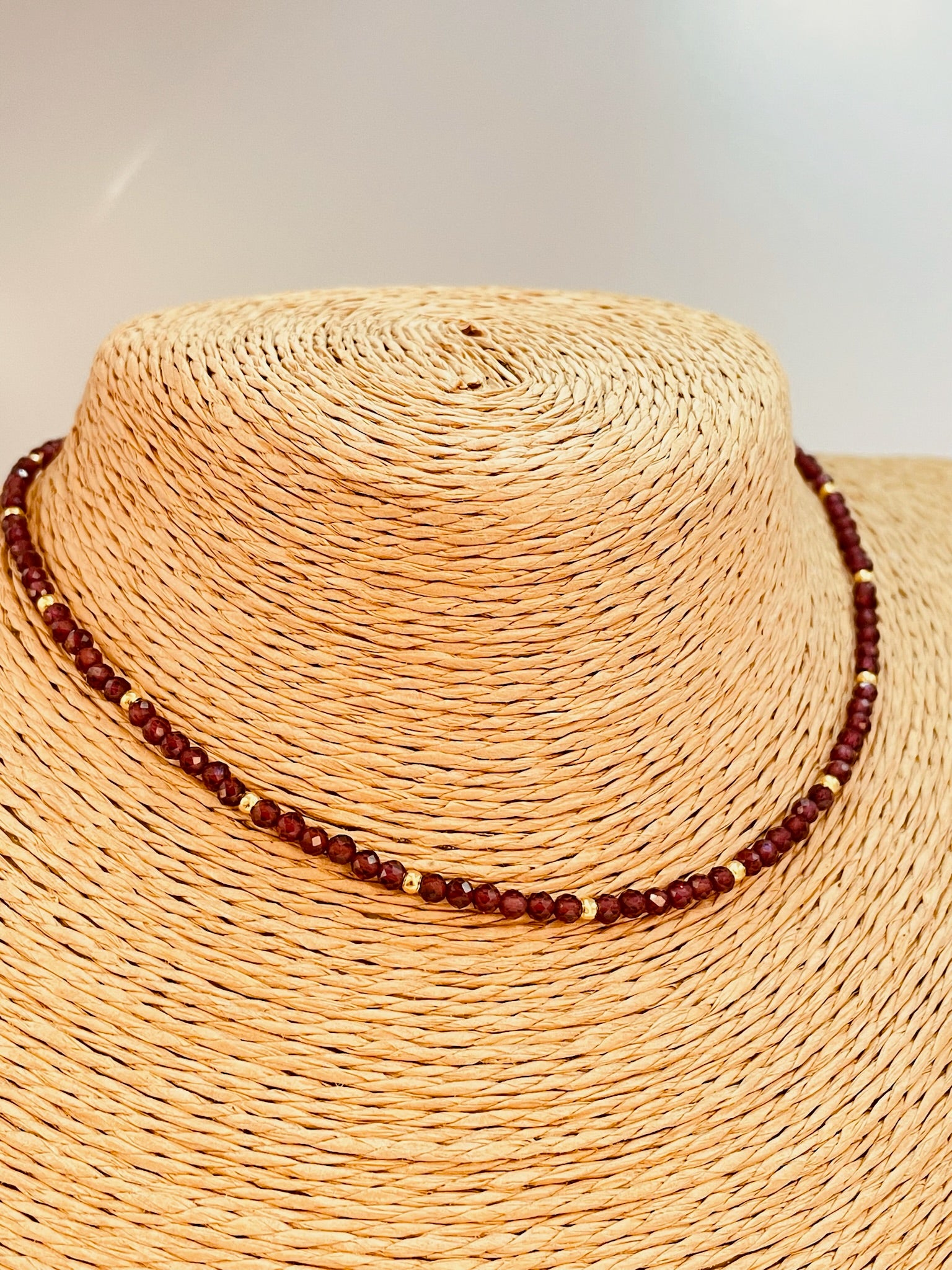 ZO4057 Collar Granate 3 mm y bolitas 2 mm Largo 40 cm y extensor 5 cm Collar Baño Oro