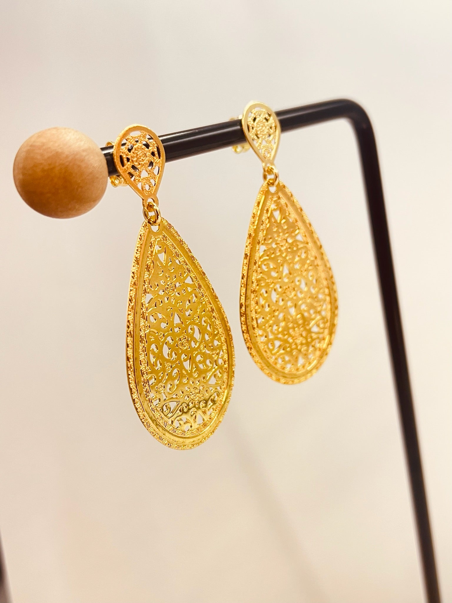 ZO2540 Aro Alargado Oval Calado 45 mm Baño Oro
