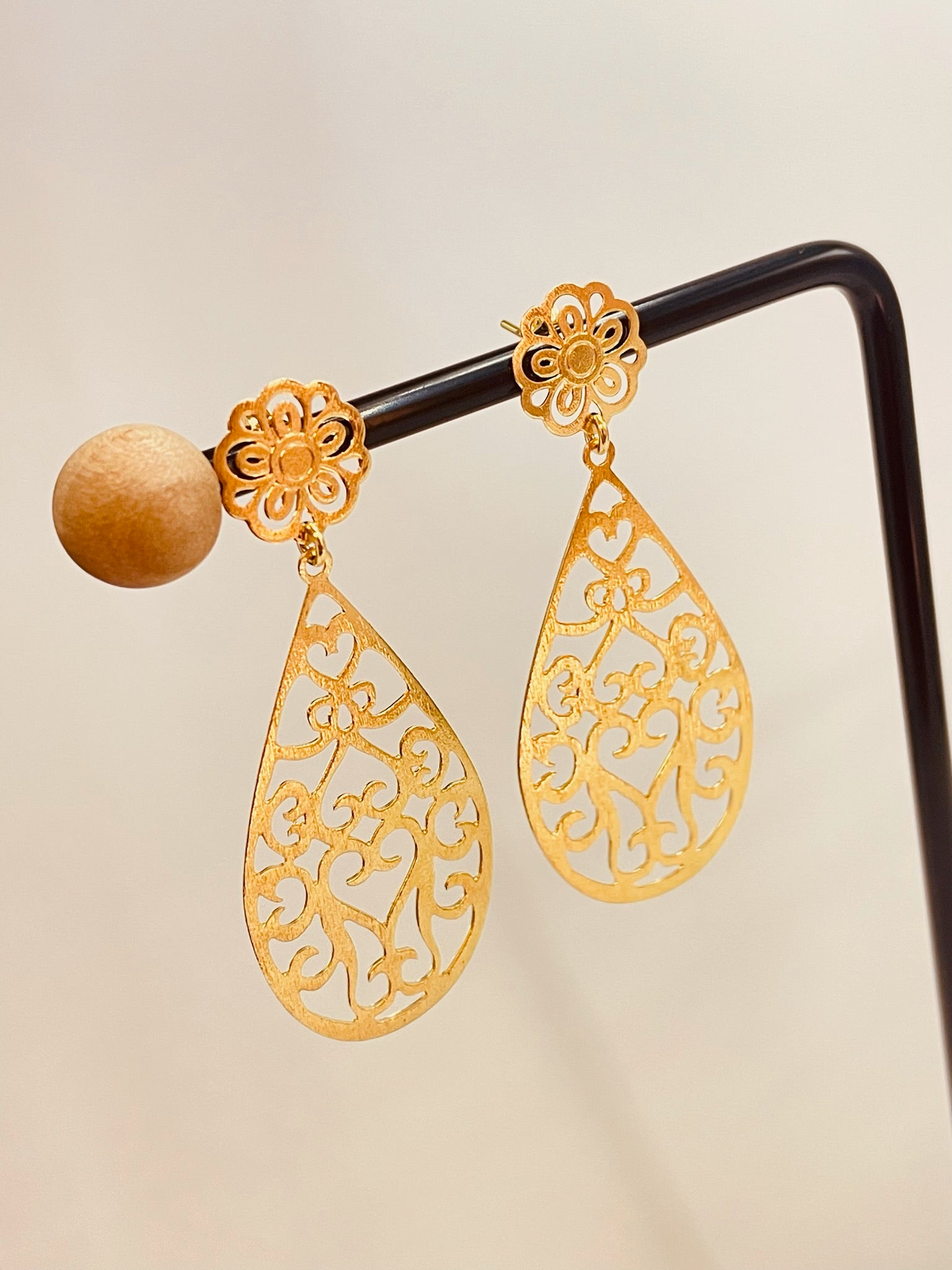 ZO2542 Aro Oval Alargado Mándala Calada Baño Oro