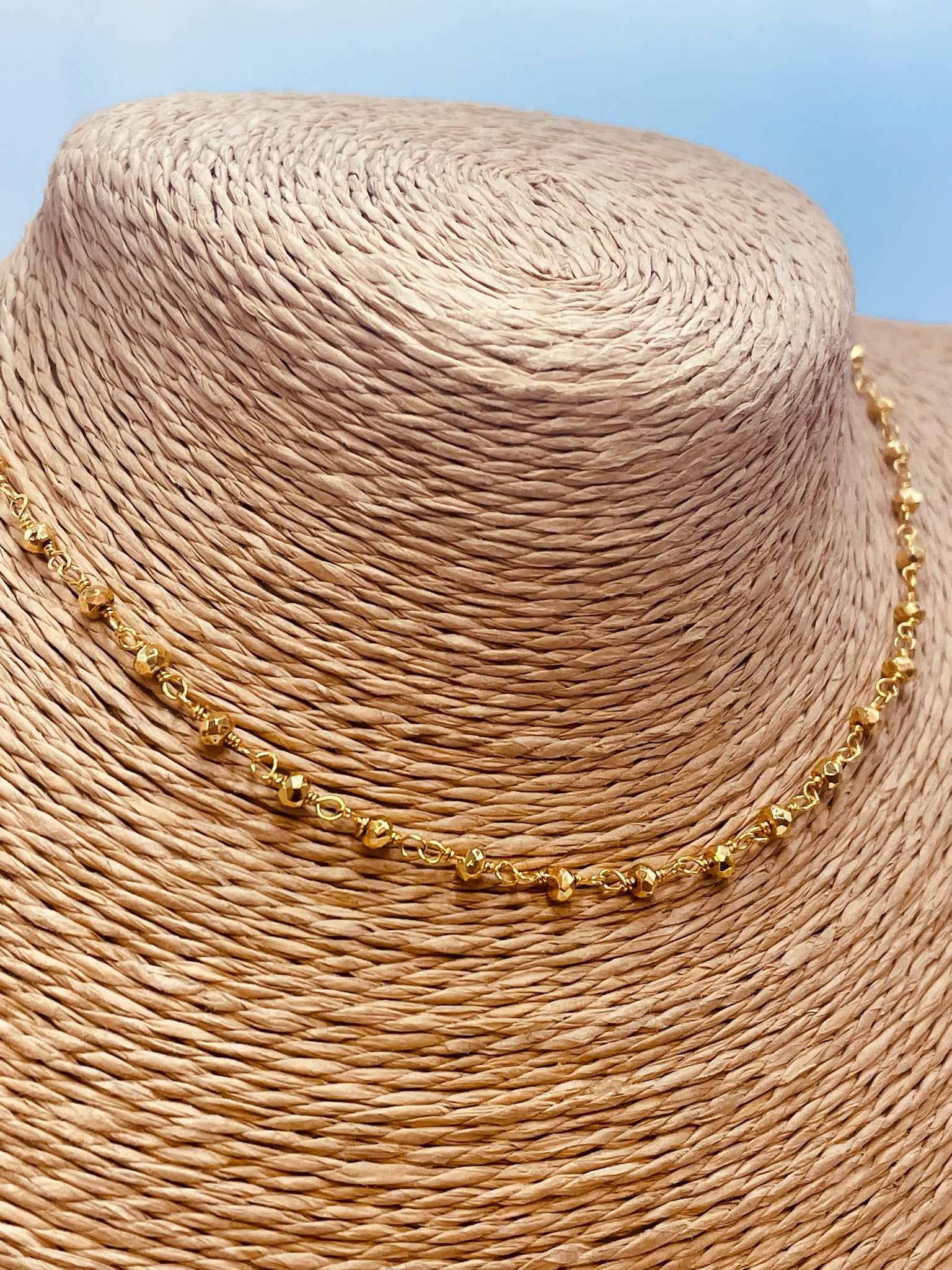 ZO4036 Collar Pirita Entorchado 40 cm mas Extensor 5 cm Baño Oro