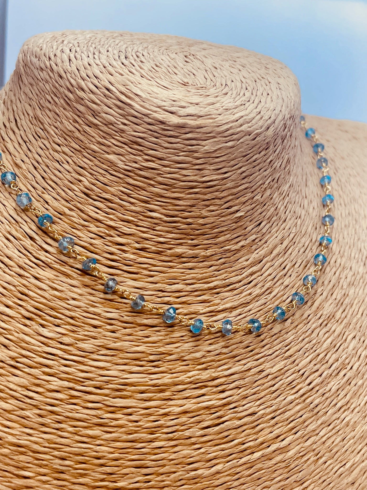ZO4042 Collar Entorchado Topacio Azul 40 cm mas Extensor Baño Oro
